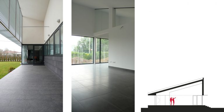 La  vivienda se formaliza como una gran pieza maciza de piedra oscura con sección trapezoidal que descansa sobre la exuberante naturaleza del Valle de Zuia. La casa se abre literalmente hacia el sur en busca de luz y vistas. El diseño se organiza bajo un esquema clásico de espacios servidos y servidores. Estos últimos brindan a la casa protección y seguridad hacia el norte, mientras que los espacios servidos proyectan sus áreas hacia el jardín sur.